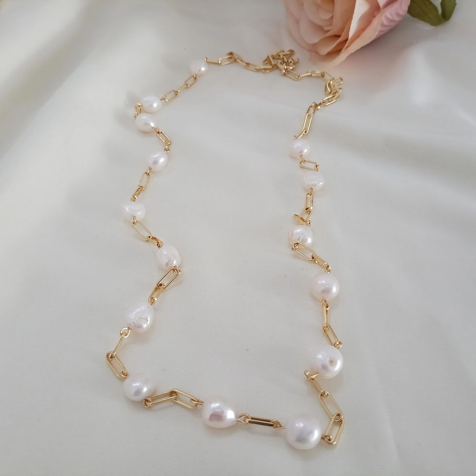 Cadena de oro laminado brasileño 18k con perla cultivada barroca.