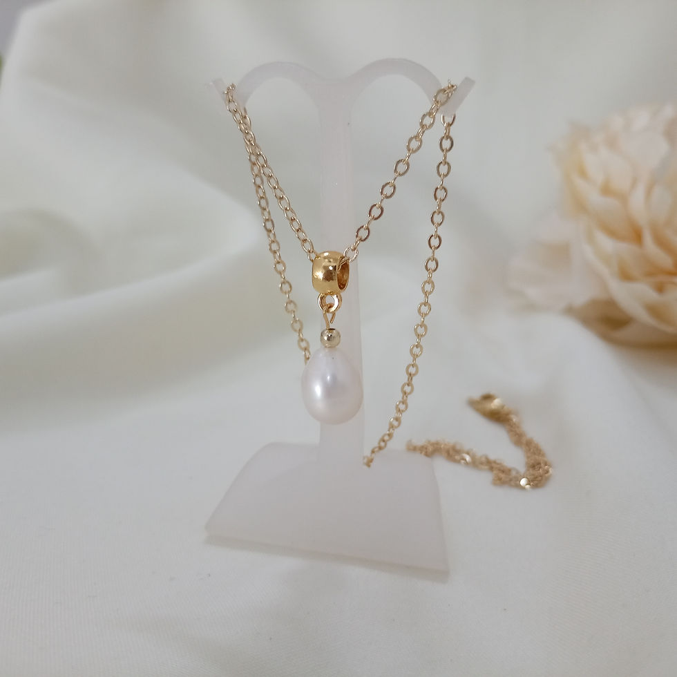 Dije perla cultivada tipo gota en cadena de oro laminado brasileño 18 kt